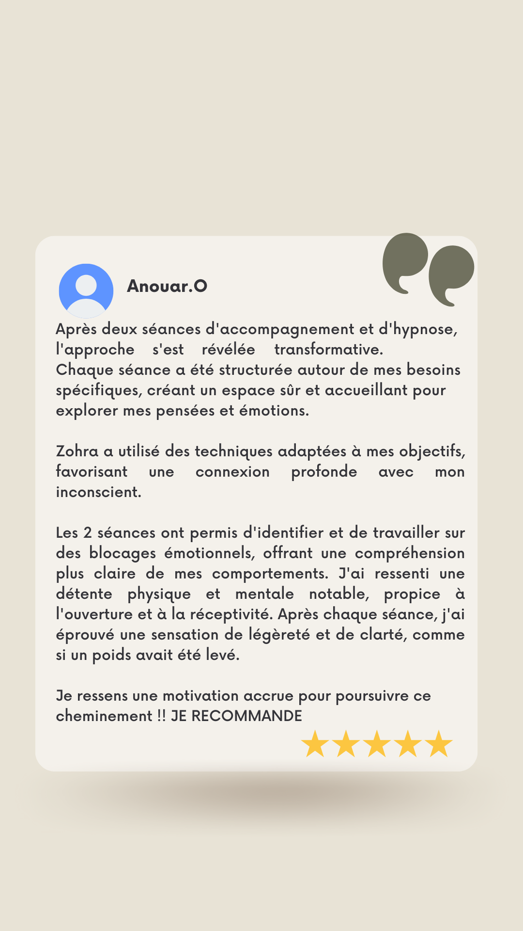 Nous vous guidons pour dépasser le stress et les blocages émotionnels. Vous accédez à une sérénité profonde, renforcez votre confiance et retrouvez votre plein potentiel.